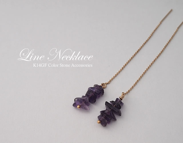 2月の誕生石、アメシスト(紫水晶)のk14gfラインピアス。